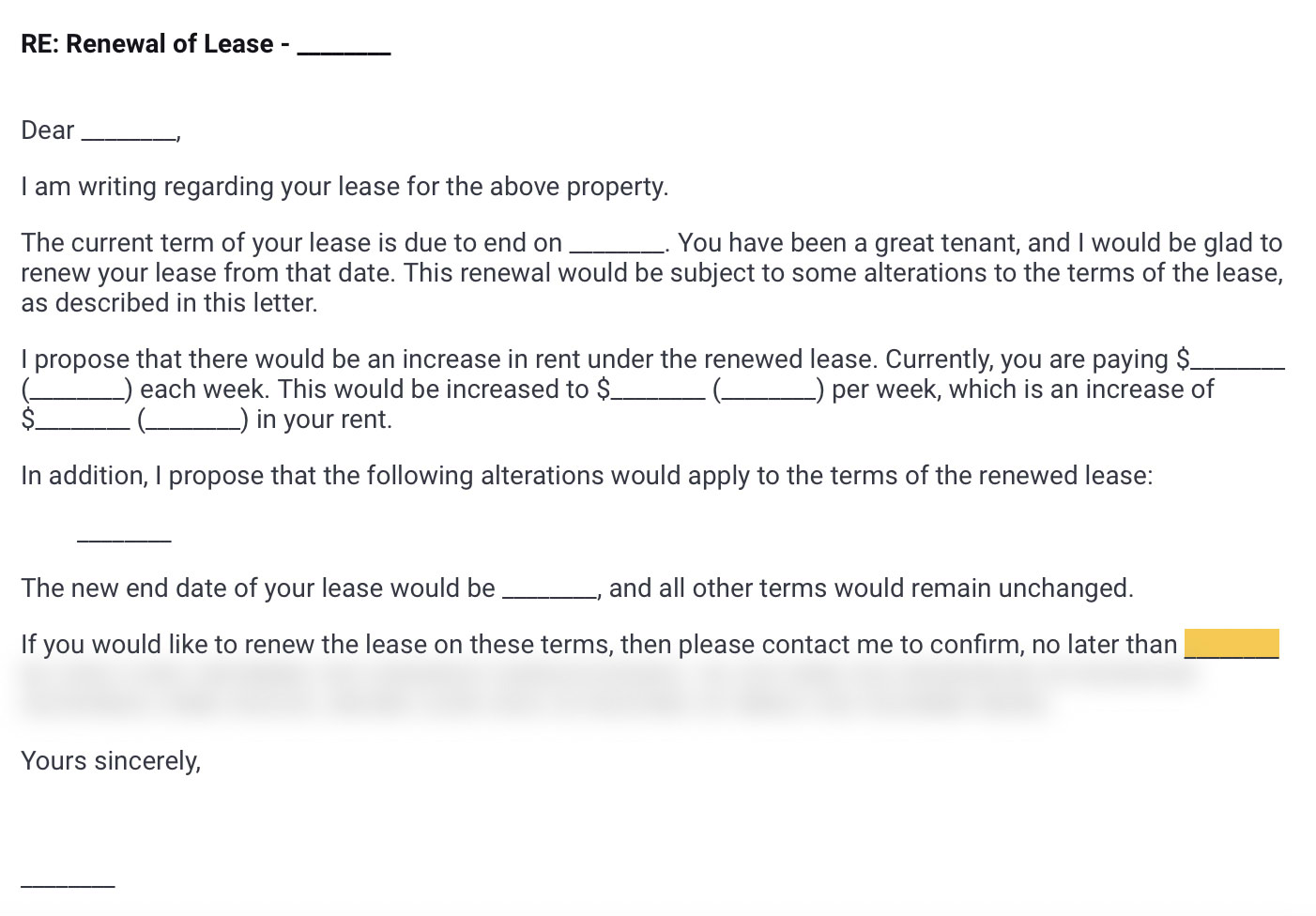 Within the letter, your property manager can also notify the tenant of any proposed changes to the terms of the lease. For example, if the rental provider or landlord is proposing to increase the rent, or to change some other terms of the lease, these changes can be summarised within this letter.